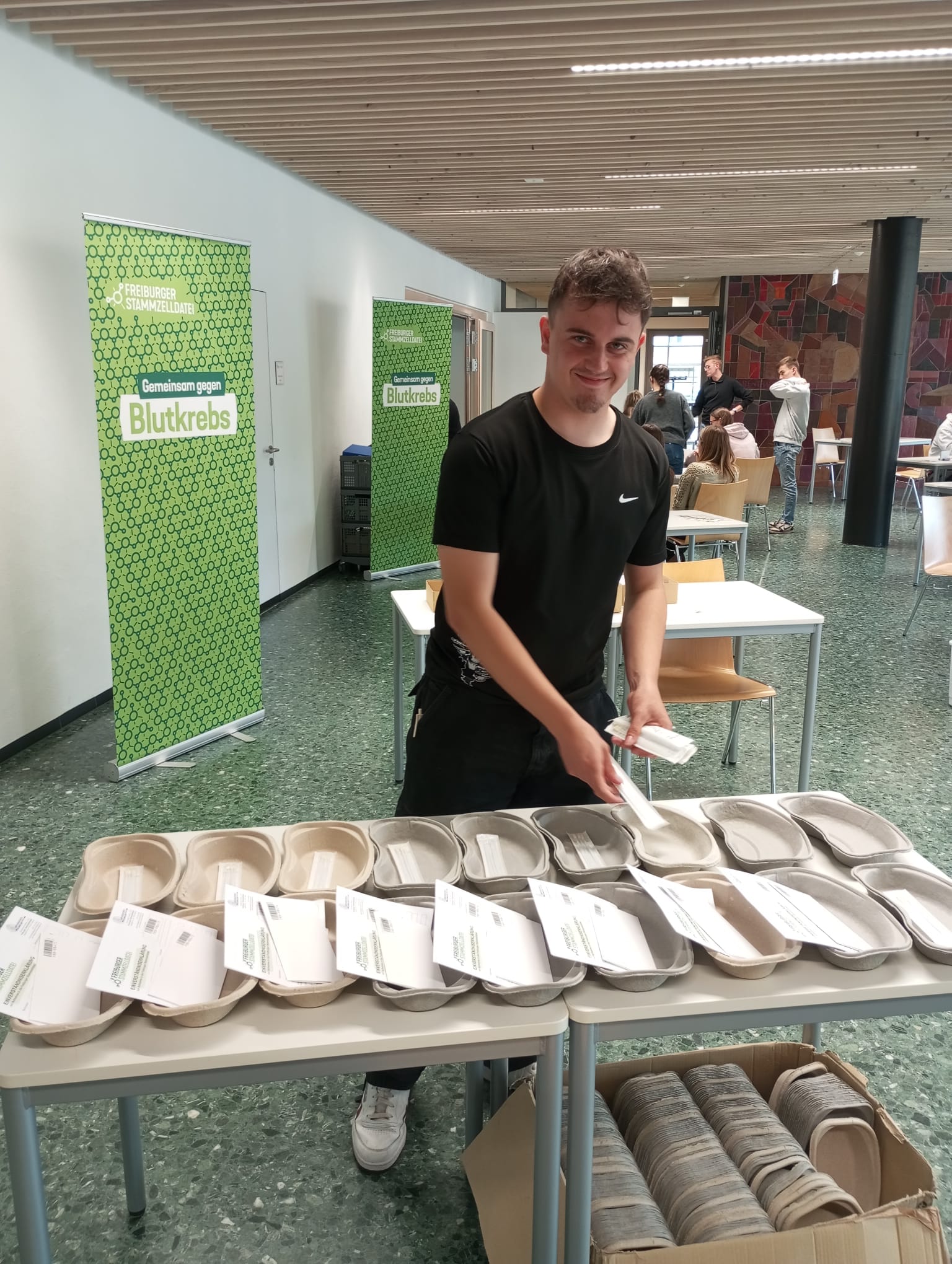 Ein Wattestäbchen kann Leben retten – und genau aus diesem Grund organisierte die HTS bereits zum zweiten Mal eine Typisierungsaktion zur Aufnahme in die Stammzellspenderdatei der Uniklinik Freiburg. Ethiklehrerin Jil Mir hatte das Projekt mit viel Engagement ins Leben gerufen und wurde bei der Organisation tatkräftig durch die Schülerinnen und Schüler der SMV und Verbindungsslehrerin Teresa Huber unterstützt.