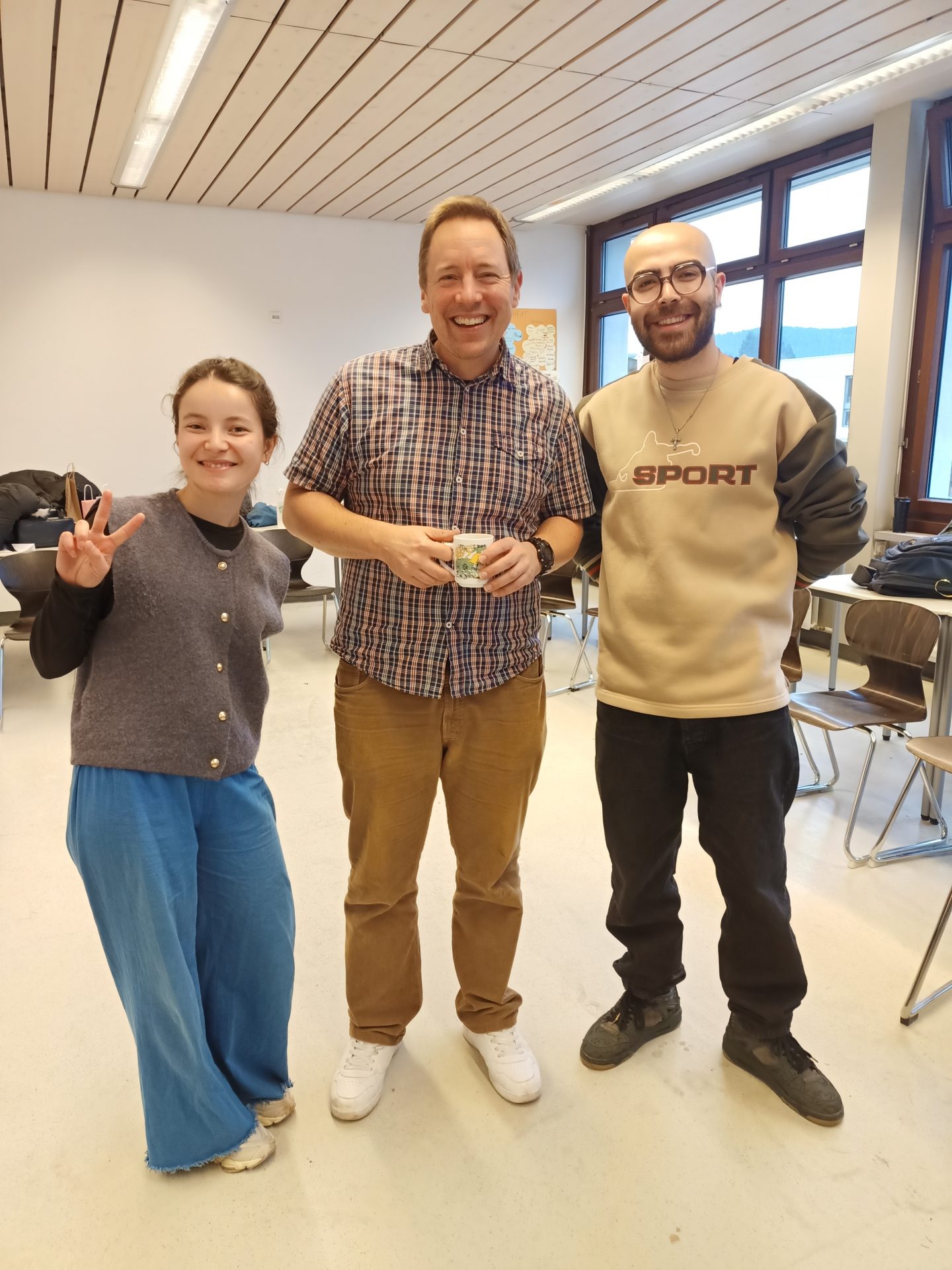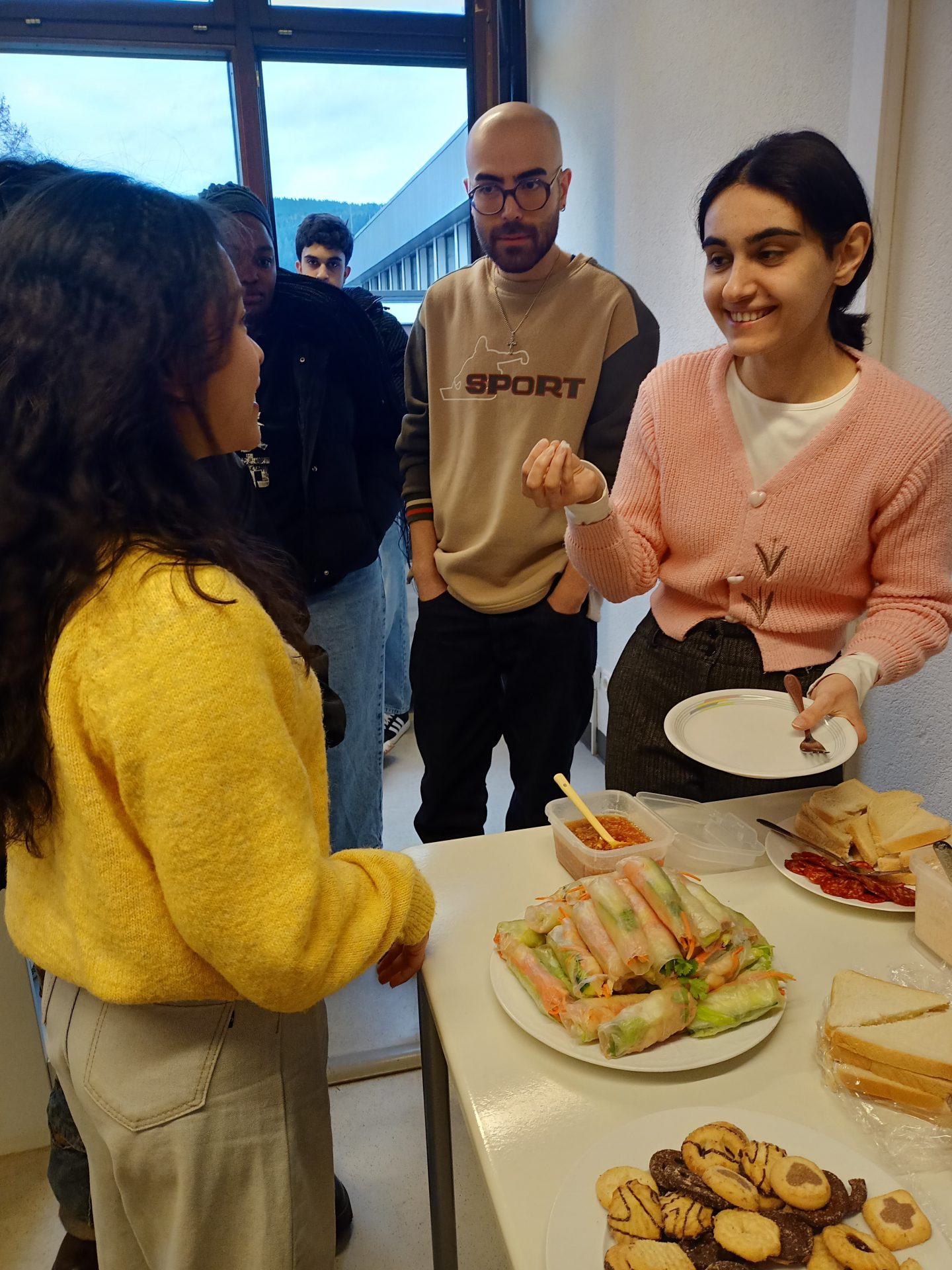 Die HOGA 3 hat in diesem Jahr mit einem besonderen Weihnachtsfrühstück das Jahr ausklingen lassen. Gemeinsam mit Ihren Lehrer:innen Frau Pfaff, Frau Birkenmeier und Herrn Wachter tauschten sie Wichtelgeschenke aus und genossen die süßen und salzigen Leckerein aus verschiedenen Ländern. Für einige war das Fest eine ganz besondere Erfahrung: Für fünf Schülerinnen und Schüler war dies das erste Weihnachten, das sie erlebten, und ein Drittel hatte noch nie Schnee gesehen.
